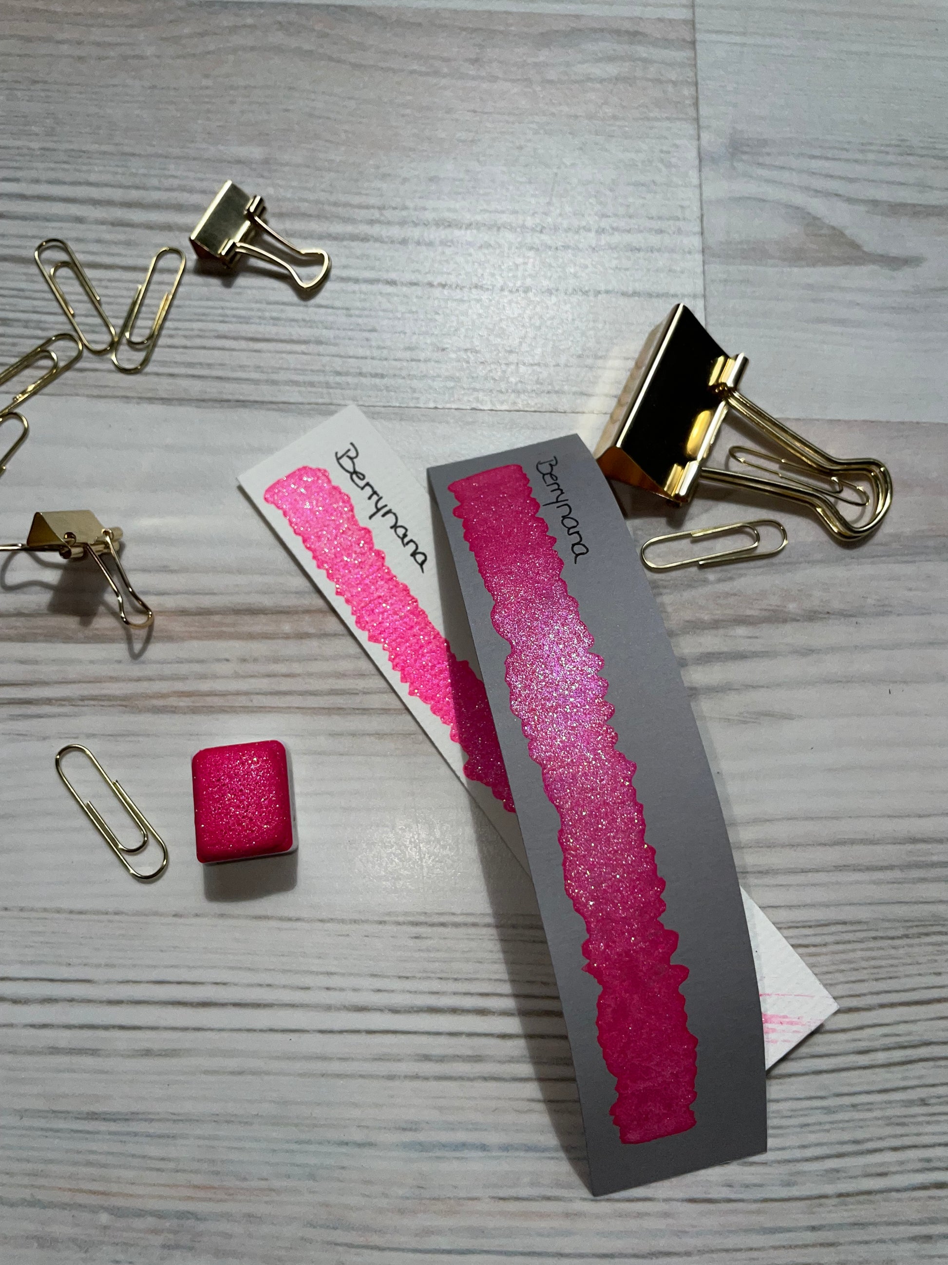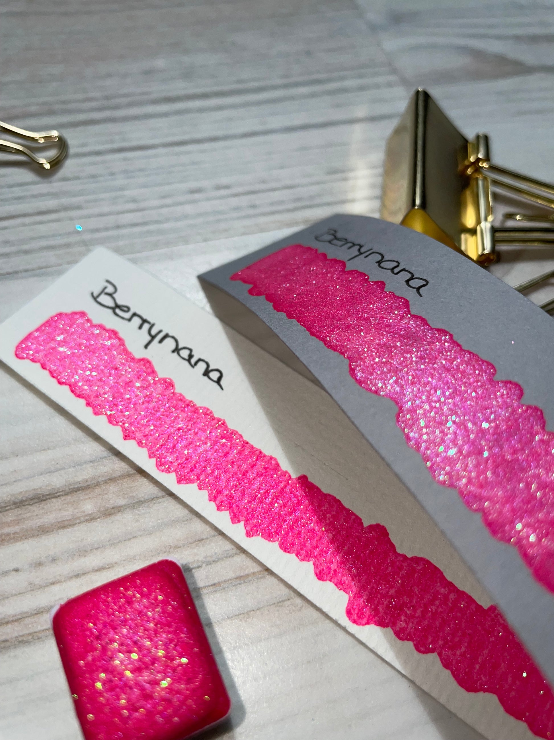Berrynana is a glittery neon fluorescent paint with a shimmer. It is also part of the Smoothie set.