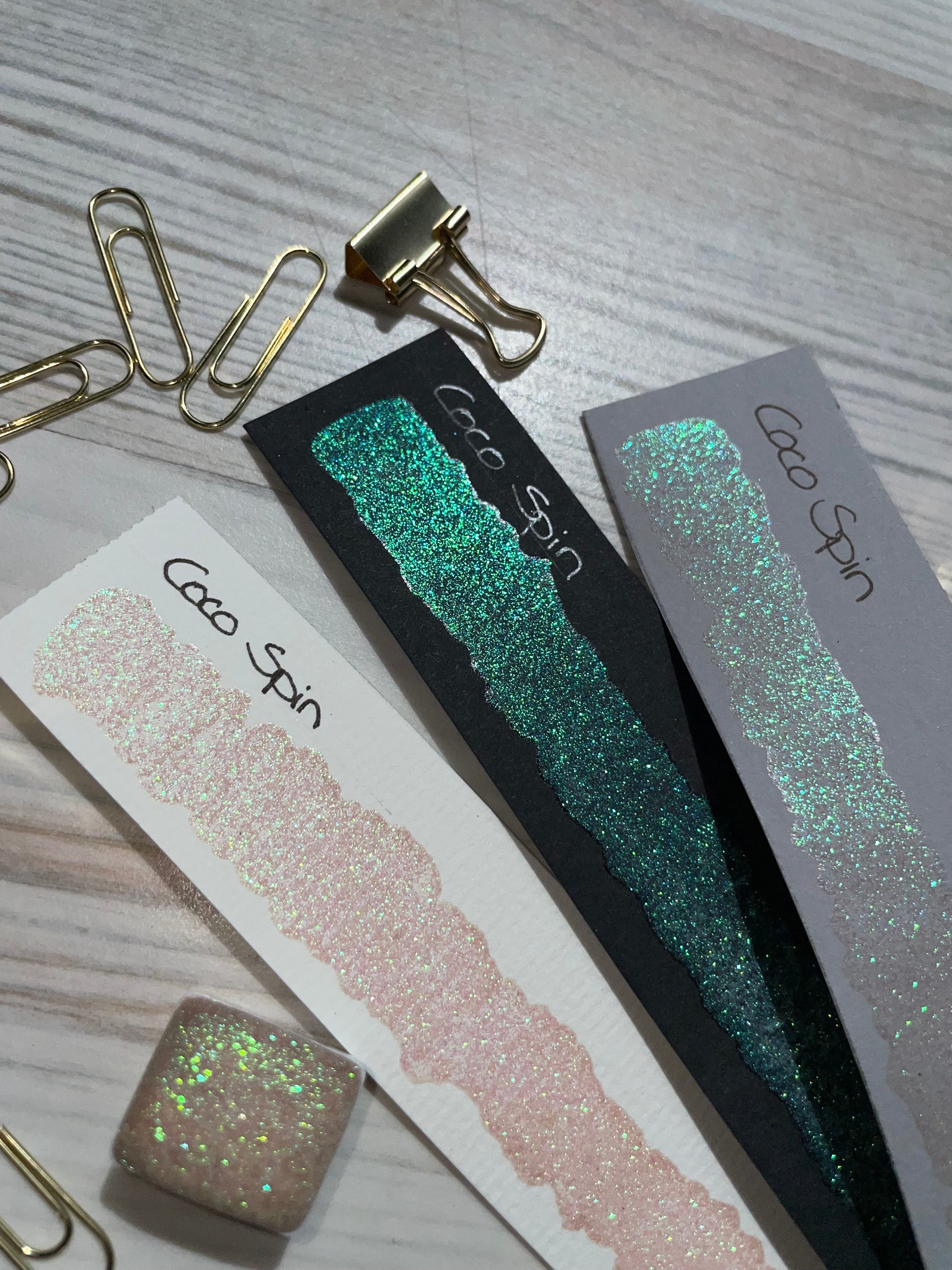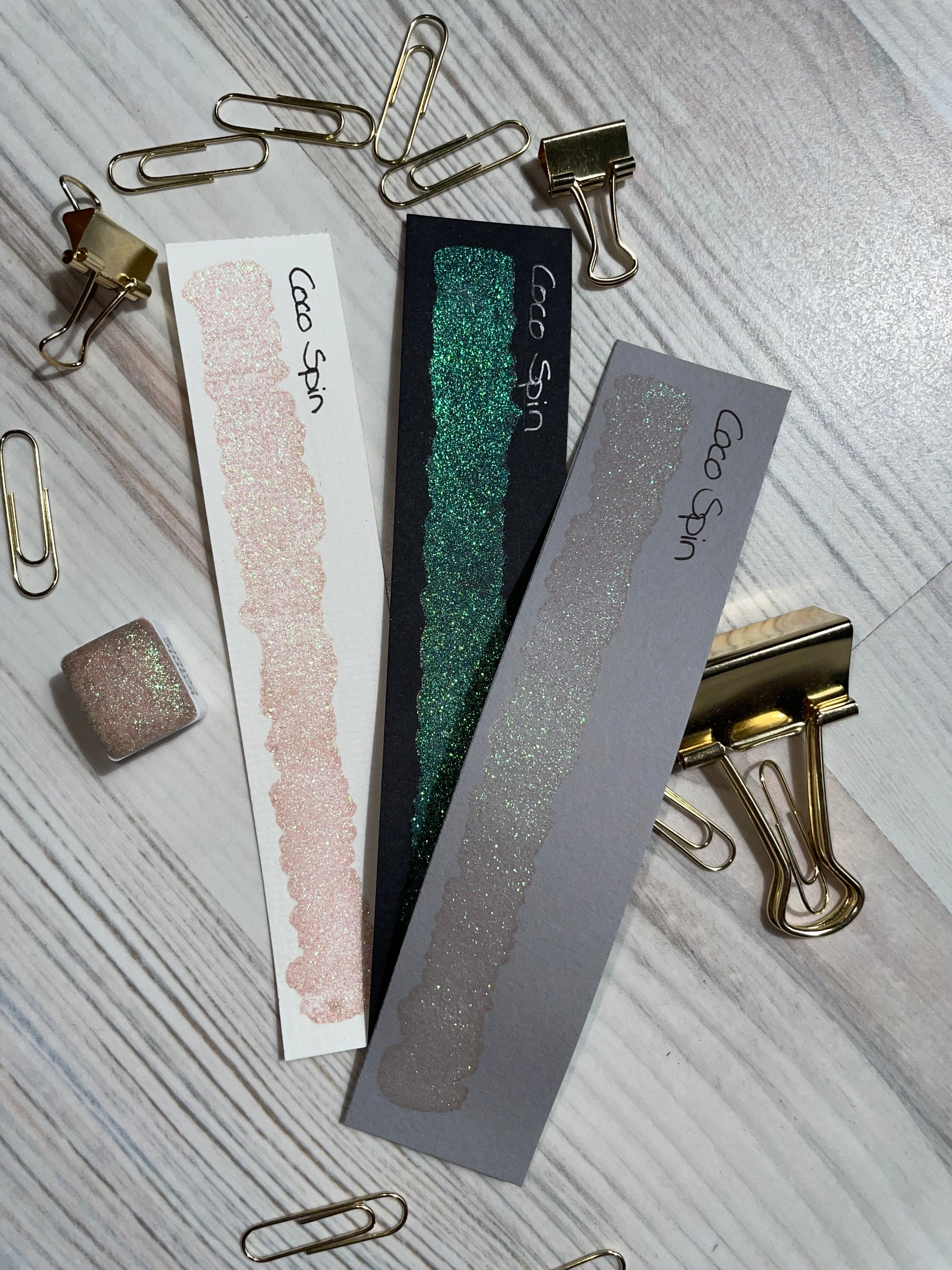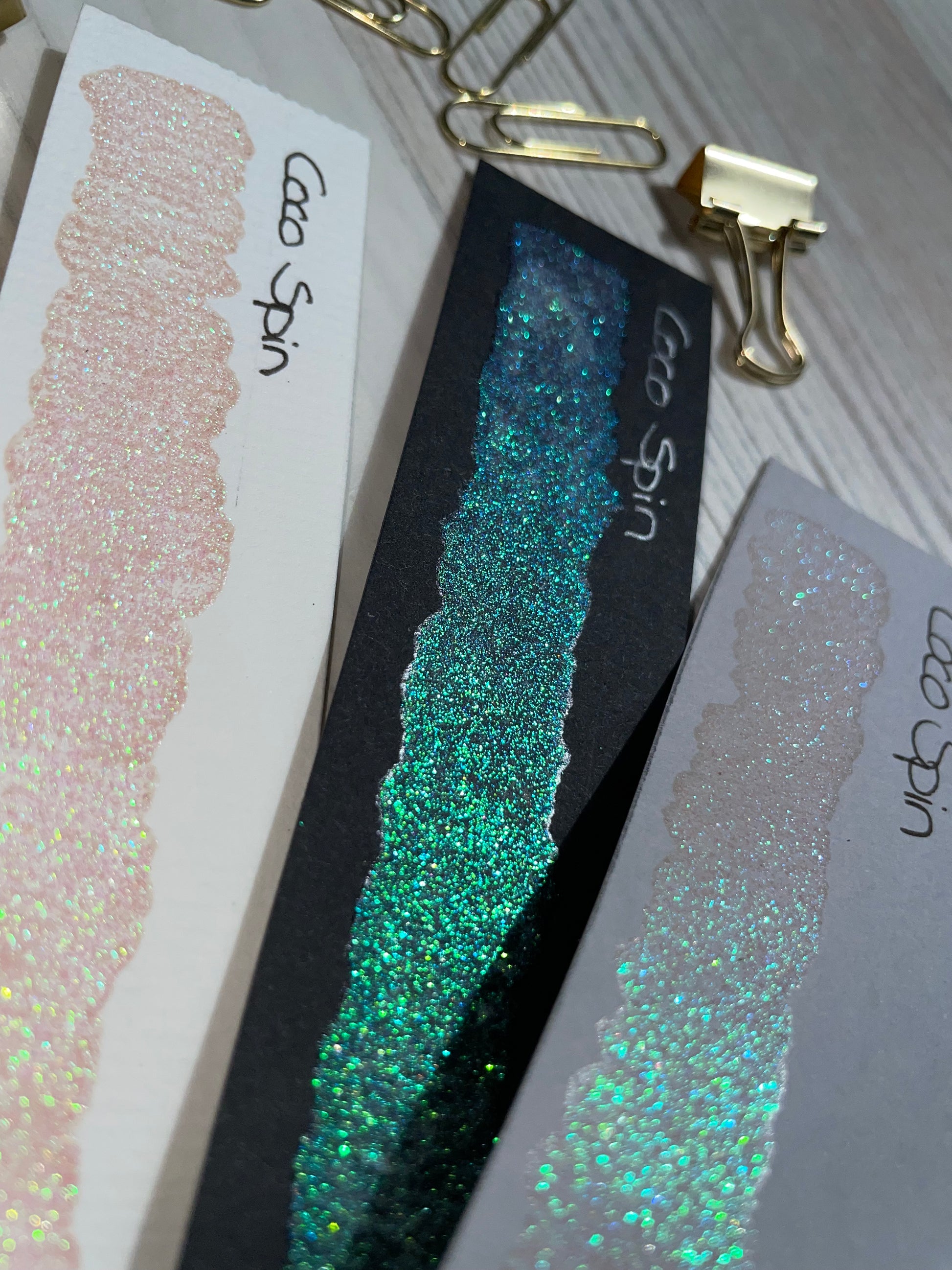 Coco Spin is a glittery paint. It is also part of the Smoothie set.