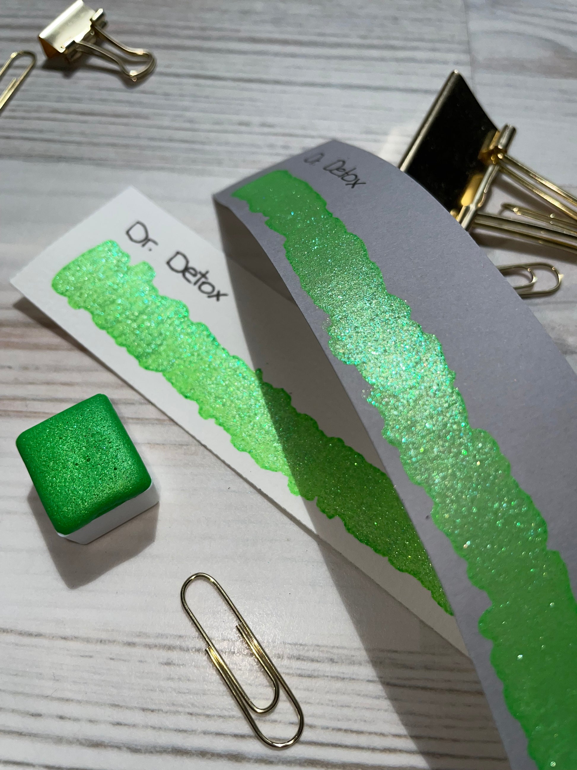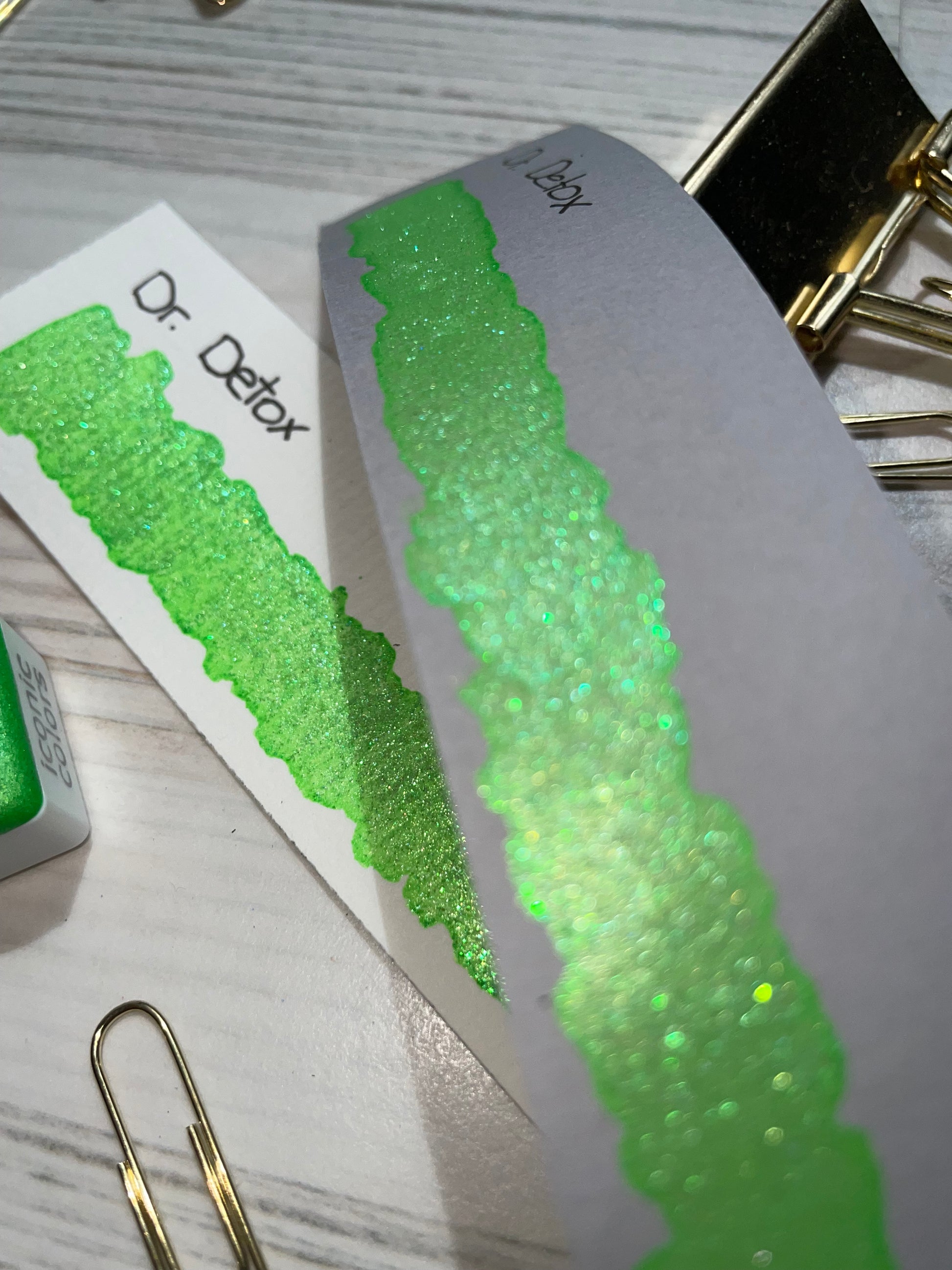 Dr. Detox is a glittery neon fluorescent paint with a shimmer. It is also part of the Smoothie set.