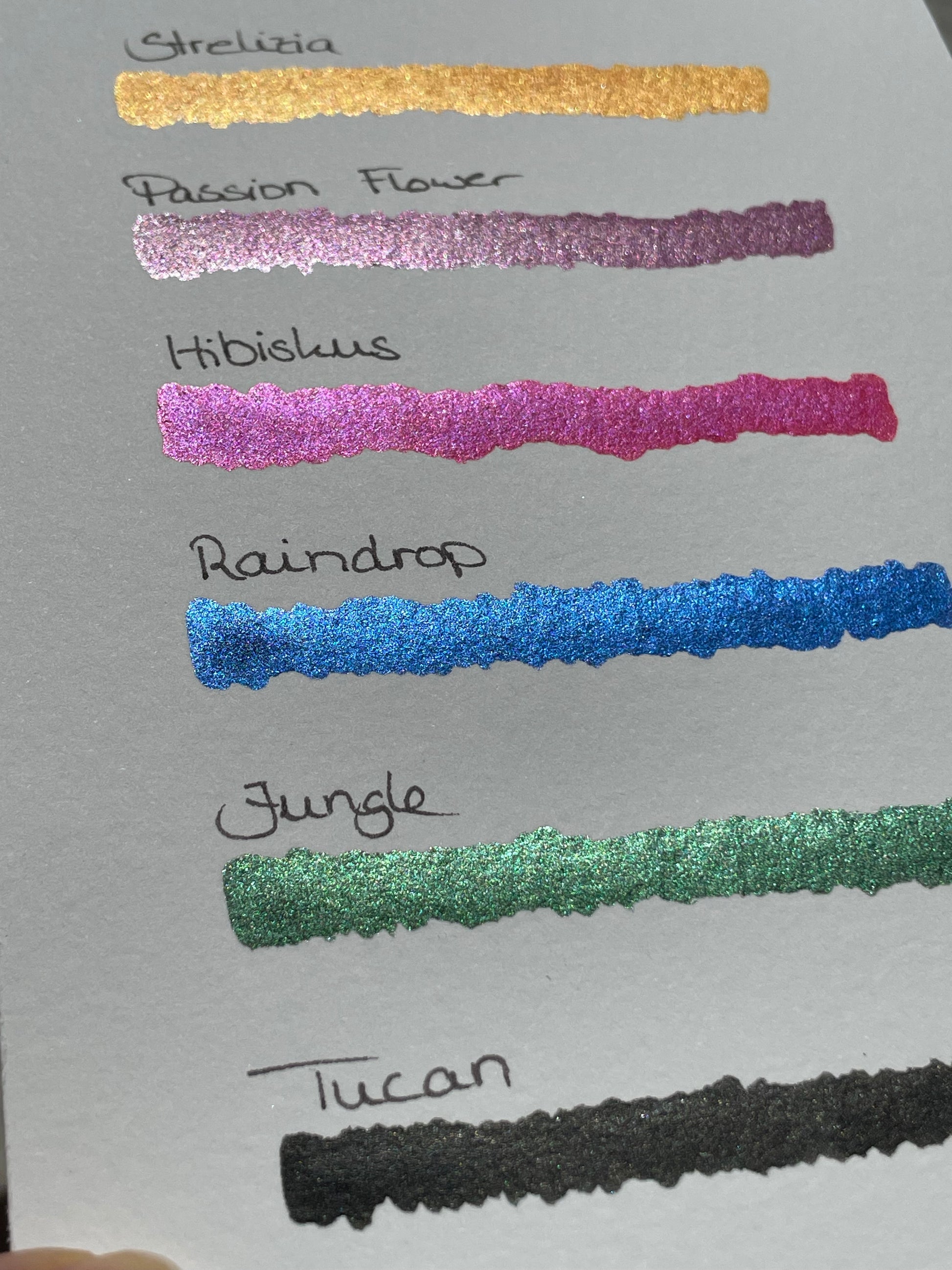 The Rainforest set comes in a handy tin box for better storage and contains the following 6 metallic colors: